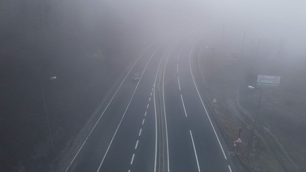 Türkiye’nin önemli geçiş noktalarından biri olan D-100 kara yolunun Bolu Dağı geçişinde sis ve sağanak etkili oluyor. Sis sebebiyle görüş